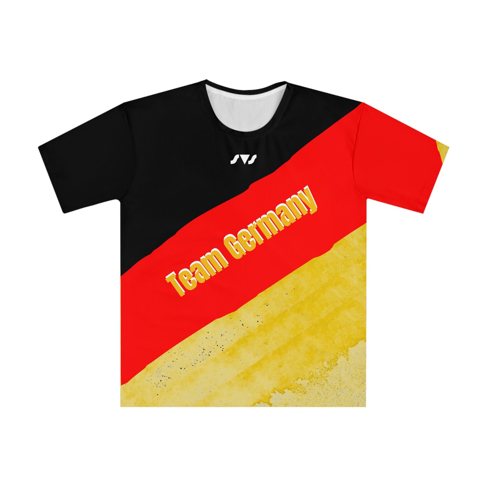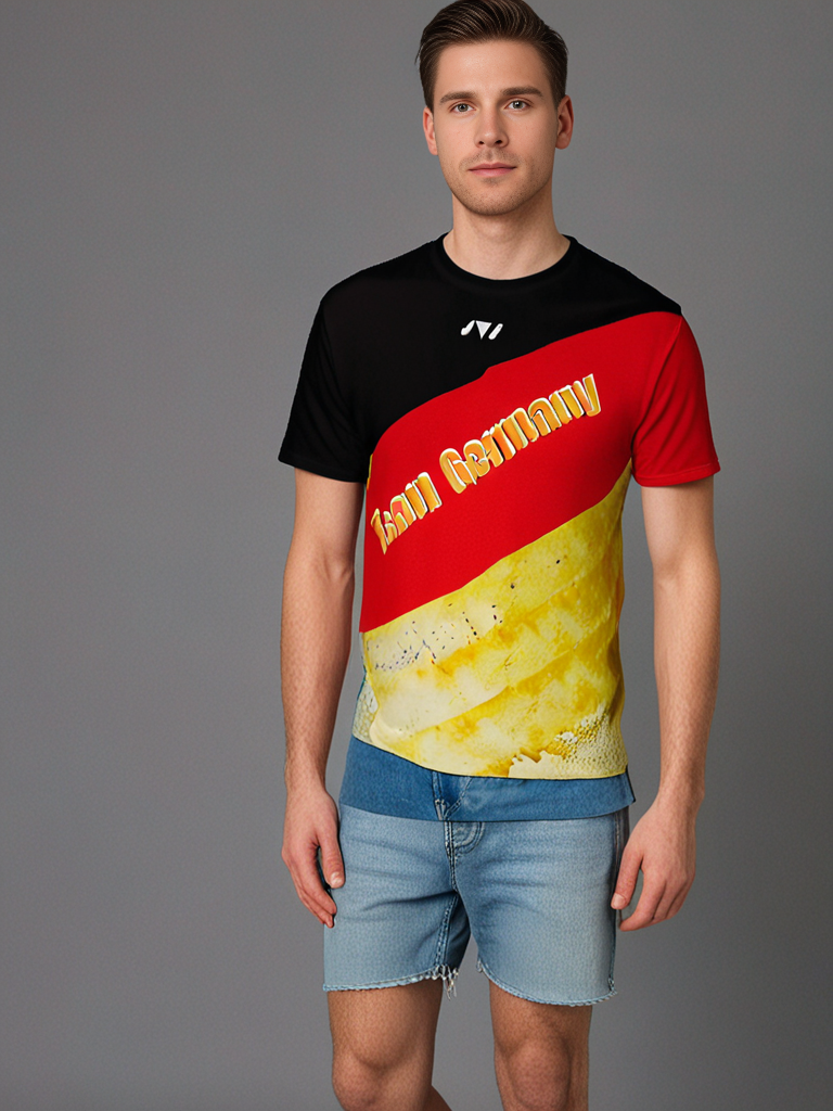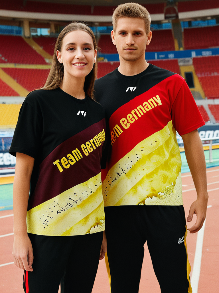 Individuell gestaltbares Multisport trikot in Schwarz, Rot, Gold Deutschland – mit Name, Logo & Text. Ideal für Sport, Training & Wettkämpfe. Feuchtigkeitsregulierend.